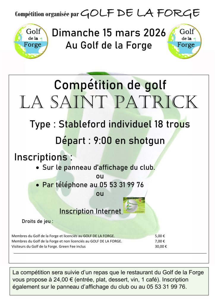 Consultez toutes nos compétitions dans l’onglet « Golf » de ce site et inscrivez vous vite.