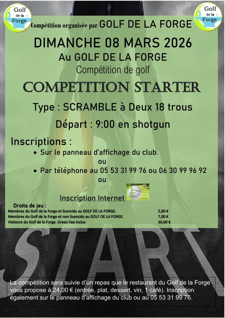 Consultez toutes nos compétitions dans l’onglet « Golf » de ce site et inscrivez vous vite.