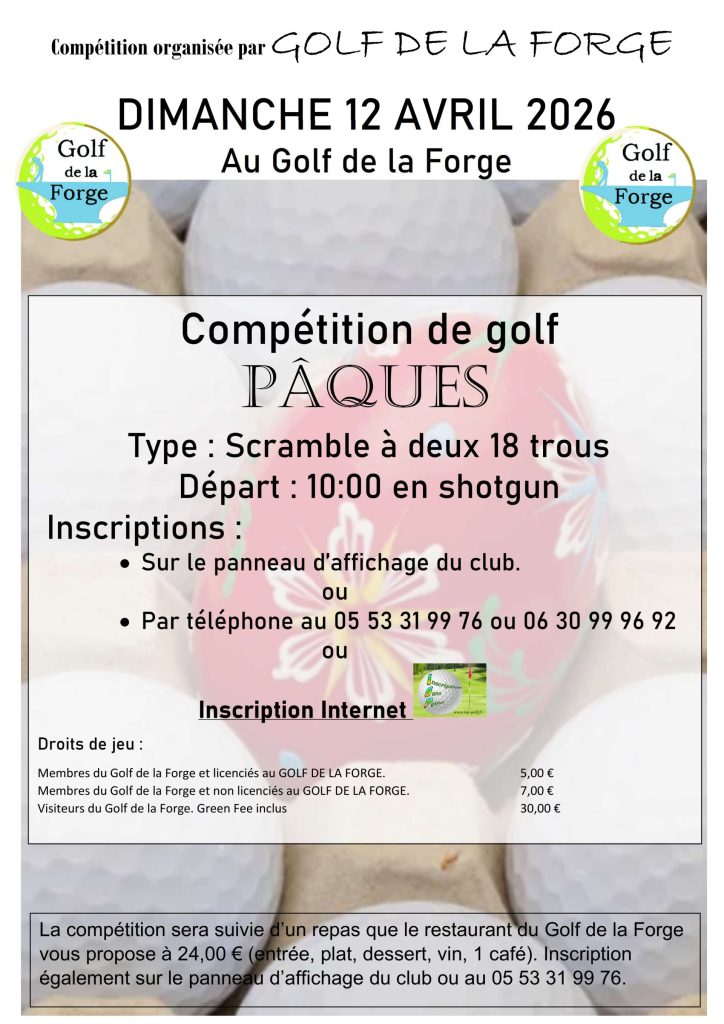 La saison continue et au mois d’avril ce sont deux compétitions qui seront organisées au GOLF DE LA FORGE.